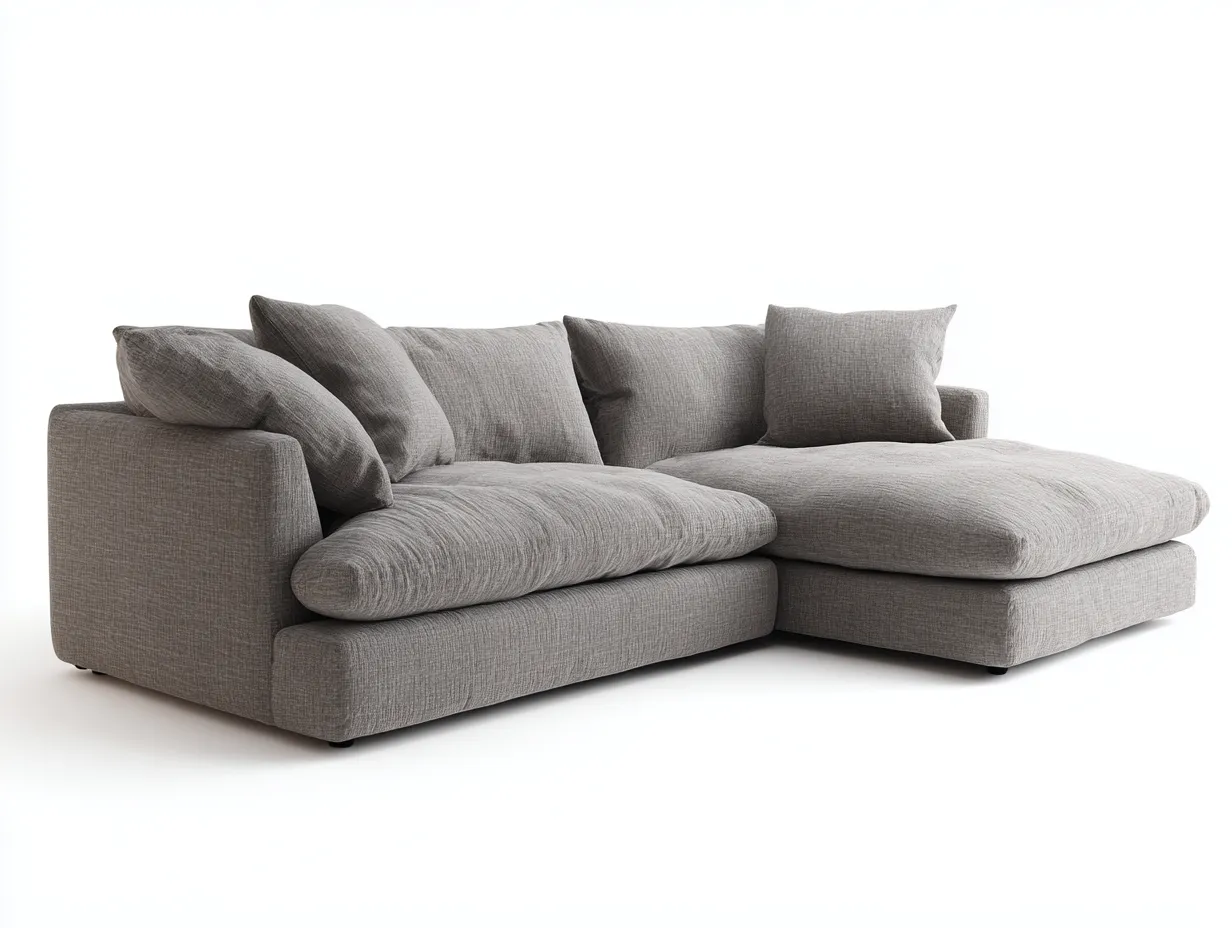 Sofá rinconero de tela gris topo con chaise longue y cojines amplios 252 x 158 x 83 cm - para salón - estilo contemporáneo y relajado