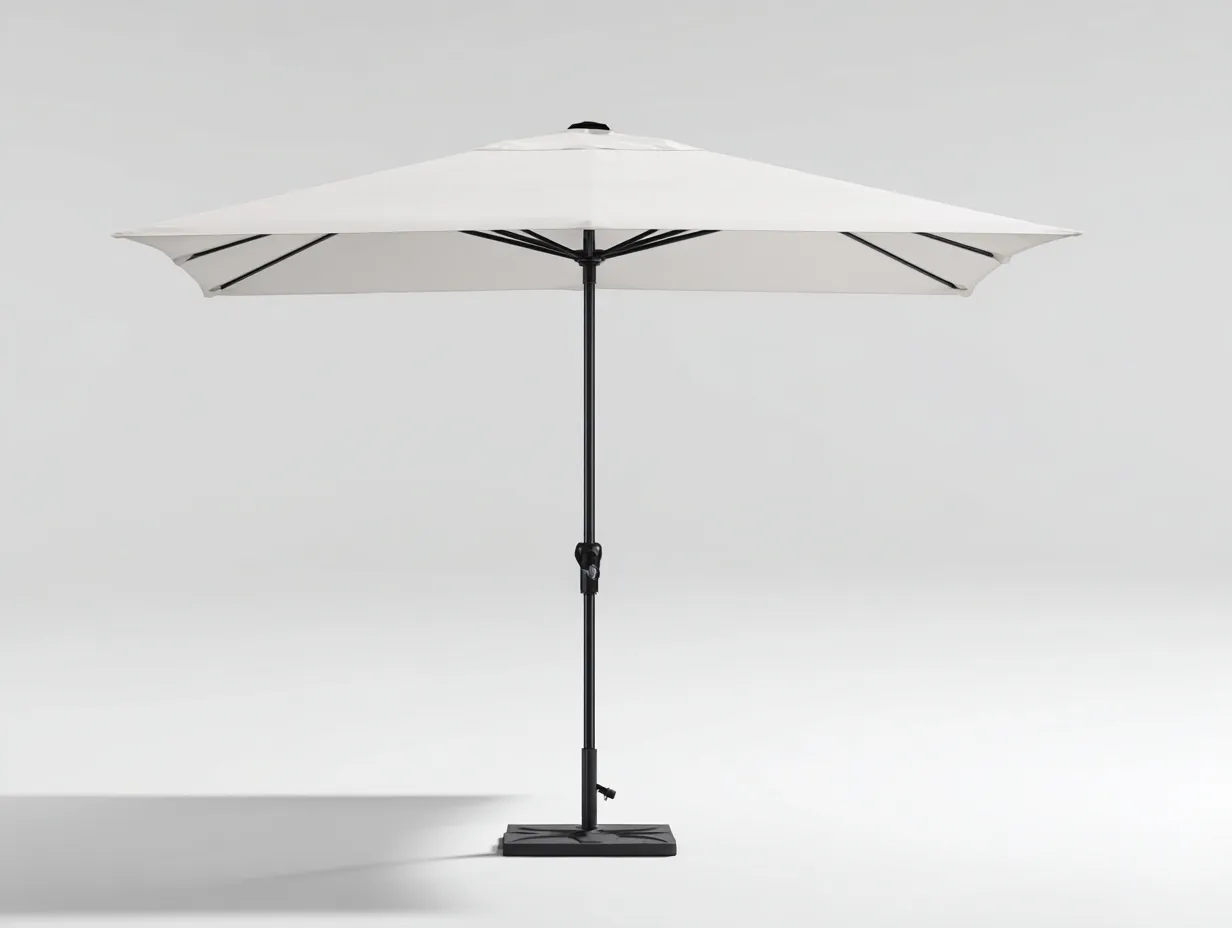 Sombrilla en tela y metal 300 x 200 x 248 cm - blanco roto y negro - para jardín y terraza - estilo minimalista con formato rectangular, poste central y base cuadrada