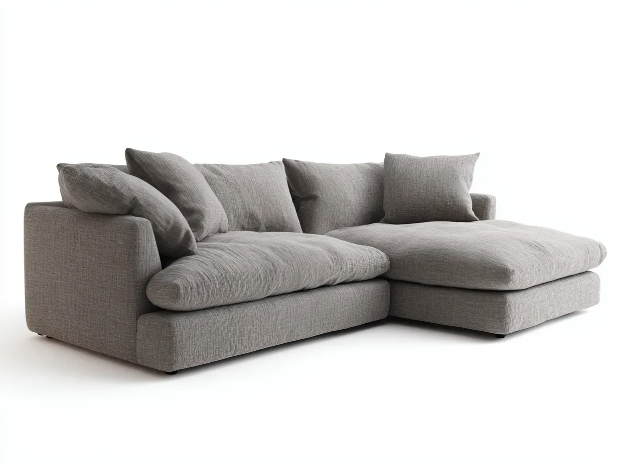 Este sofá rinconero de tela gris topo con chaise longue crea en el salón una atmósfera serena, cómoda y muy actual. Su diseño de volúmenes bajos, cojines generosos y líneas limpias aporta una imagen acogedora que invita al descanso diario sin recargar visualmente el espacio.La chaise longue amplía la superficie útil y permite adoptar una postura más libre para leer, conversar o relajarse. Gracias a su presencia envolvente y a su composición equilibrada, este modelo funciona como una pieza central práctica y elegante para un salón pensado para el confort.
