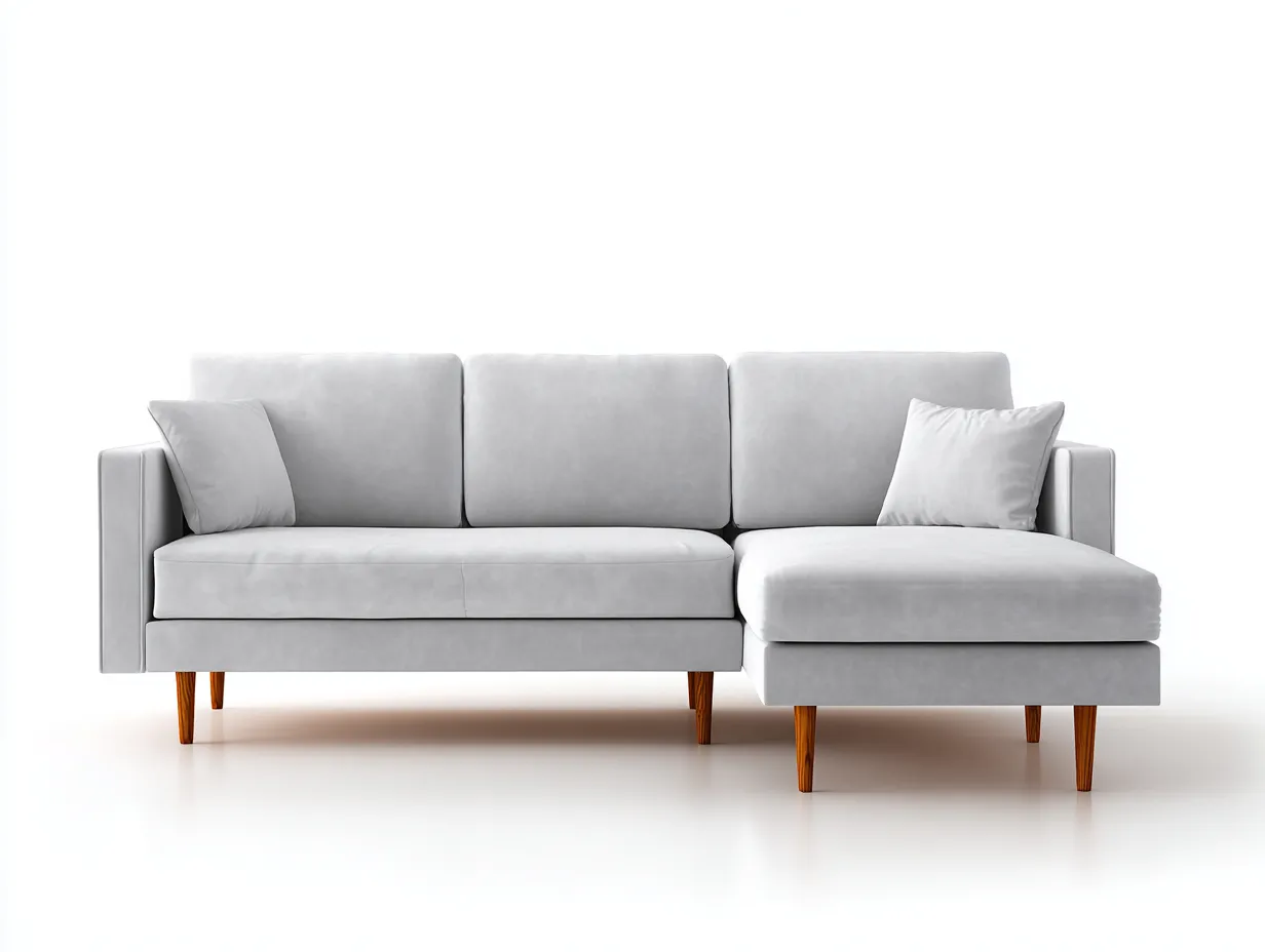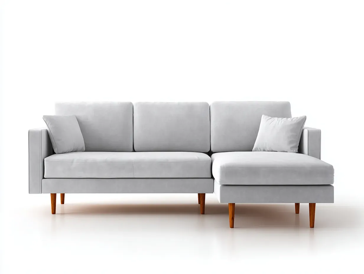 Este sofá rinconero de terciopelo gris claro con chaise longue aporta al salón una imagen refinada, serena y muy equilibrada. Su diseño combina una estructura ligera visualmente, respaldos amplios y una superficie de asiento generosa que invita a disfrutar de momentos de descanso con total comodidad. El terciopelo gris claro refleja suavemente la luz y ayuda a crear un ambiente más luminoso, mientras que las patas de madera añaden un contraste cálido y natural. La chaise longue amplía la zona útil y permite adoptar una postura más relajada en el día a día. Gracias a su estética limpia y a su presencia elegante, este modelo encaja con naturalidad en salones contemporáneos, nórdicos o de inspiración atemporal.