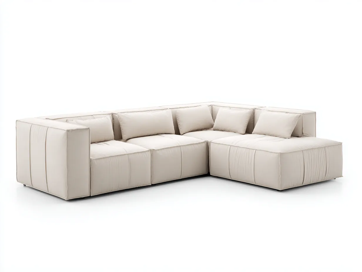 La configuración rinconera crea una zona de descanso más amplia y favorece un uso flexible del espacio. Los módulos de gran formato y los cojines adicionales mejoran la comodidad para relajarse, leer o compartir momentos cotidianos.