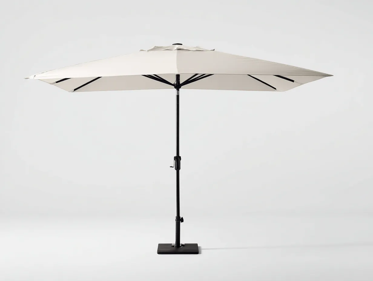 Esta sombrilla está concebida para proporcionar una cobertura amplia y bien proporcionada en espacios exteriores donde se busca confort y una imagen limpia. Su cubierta en color marfil transmite luminosidad y equilibrio visual, integrándose con facilidad en terrazas contemporáneas, patios privados o zonas de comedor al aire libre. Gracias a su formato rectangular y a su estructura estilizada, este modelo resulta especialmente adecuado para acompañar mesas largas, conjuntos de exterior o áreas de descanso con una distribución más lineal.